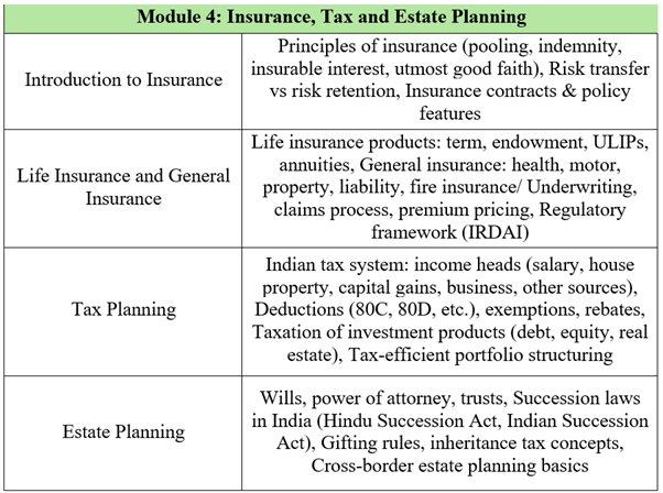 Participants begin with the fundamentals of financial planning, gaining an overview of financial markets, Behavioural finance, and microeconomics to build a strong analytical foundation.