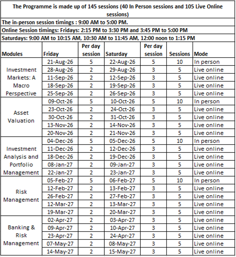 The course follows a three-pronged approach to understanding finance. Firstly, the course starts with the instructors teaching the conceptual aspects of finance. Secondly, practical assignments and cases would be discussed and solved in class. Thirdly, this course prepares the participant to take up exams such as SEBI registered investment Advisor and CFA level 1 and 2. Understanding the dynamics of the fast-paced economy and markets, and exploring the facets of regulation, and nuances of financial technology is very essential and this course brings a comprehensive outlook of the same.